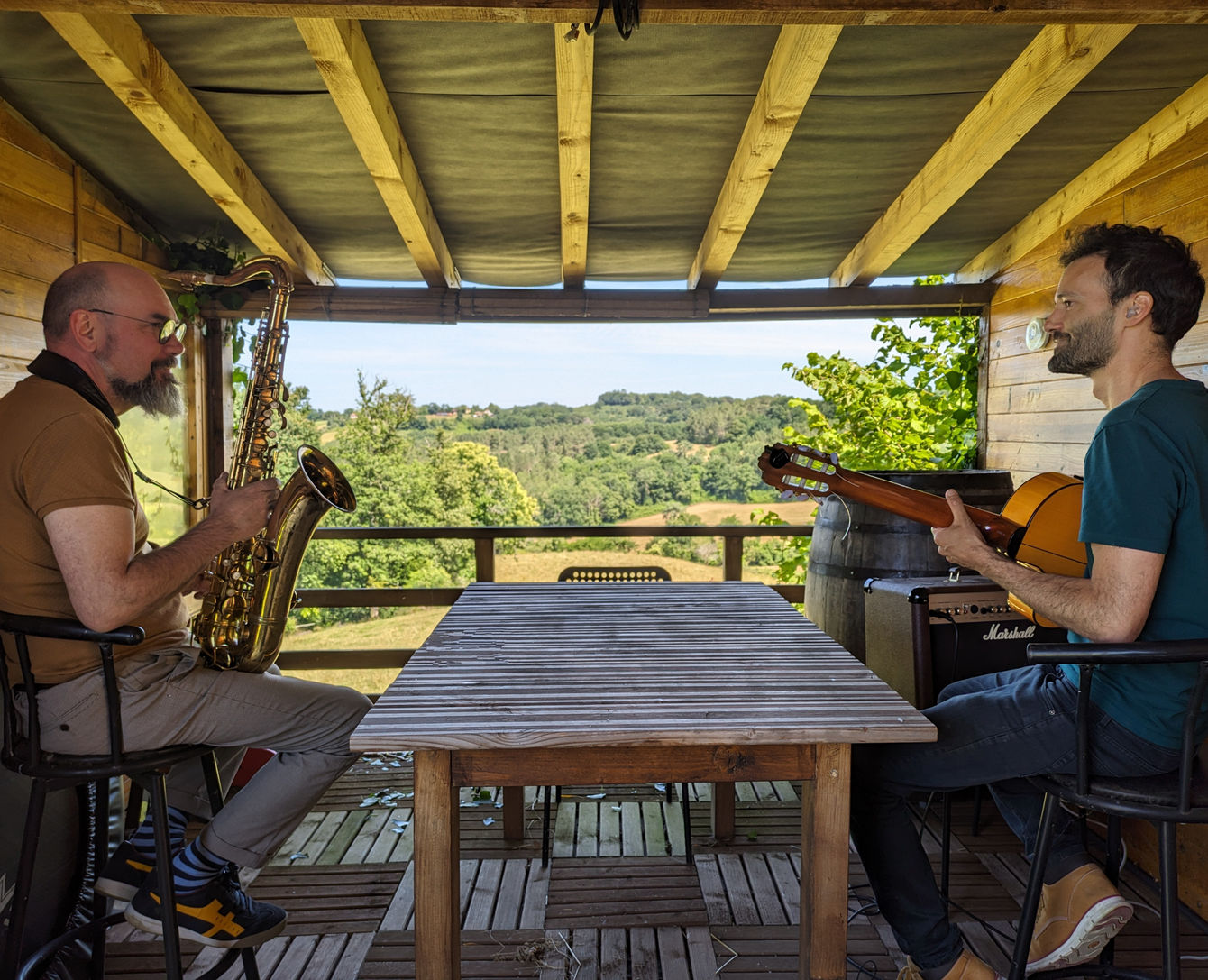 Ces deux complices, musiciens, compositeurs rêveurs, ont monté un répertoire original et spécialement conçu pour cette formation. Les influences sud-américaine, européenne et jazz nourrissent ces deux musiciens depuis longtemps. Leurs concerts sont des moments de voyages, de discussions, d'envolées et de partages.